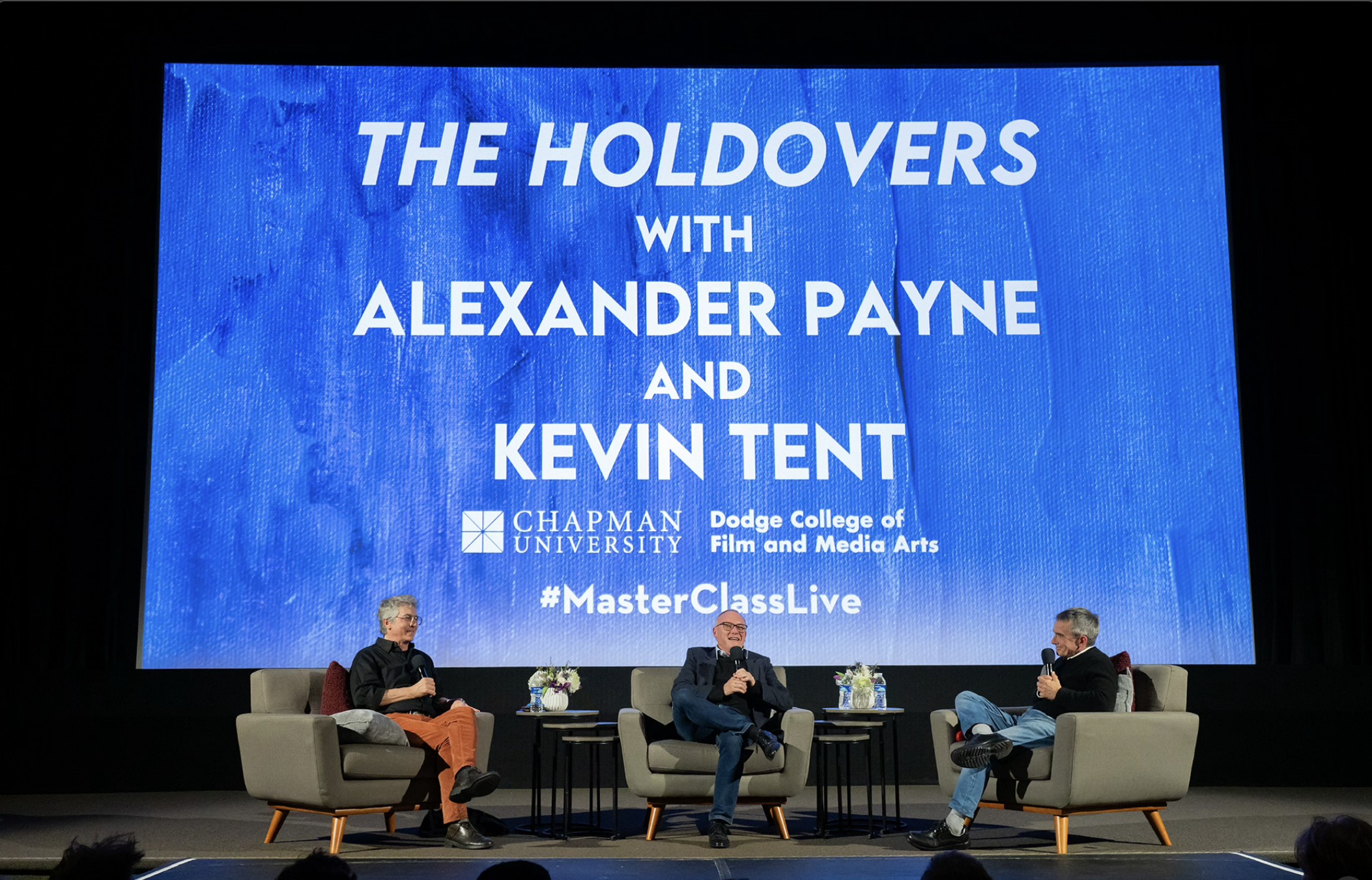 On Feb. 12, Payne and Tent joined an audience of Chapman students for a masterclass in the Folino Theater moderated by Stephen Galloway, the dean of the Dodge College of Film and Media Arts. The duo spoke about their creative dynamic, starting a career in the film industry and the making of their new film “The Holdovers” — which earned five Academy Award nominations including Best Picture and Best Achievement in Film Editing.