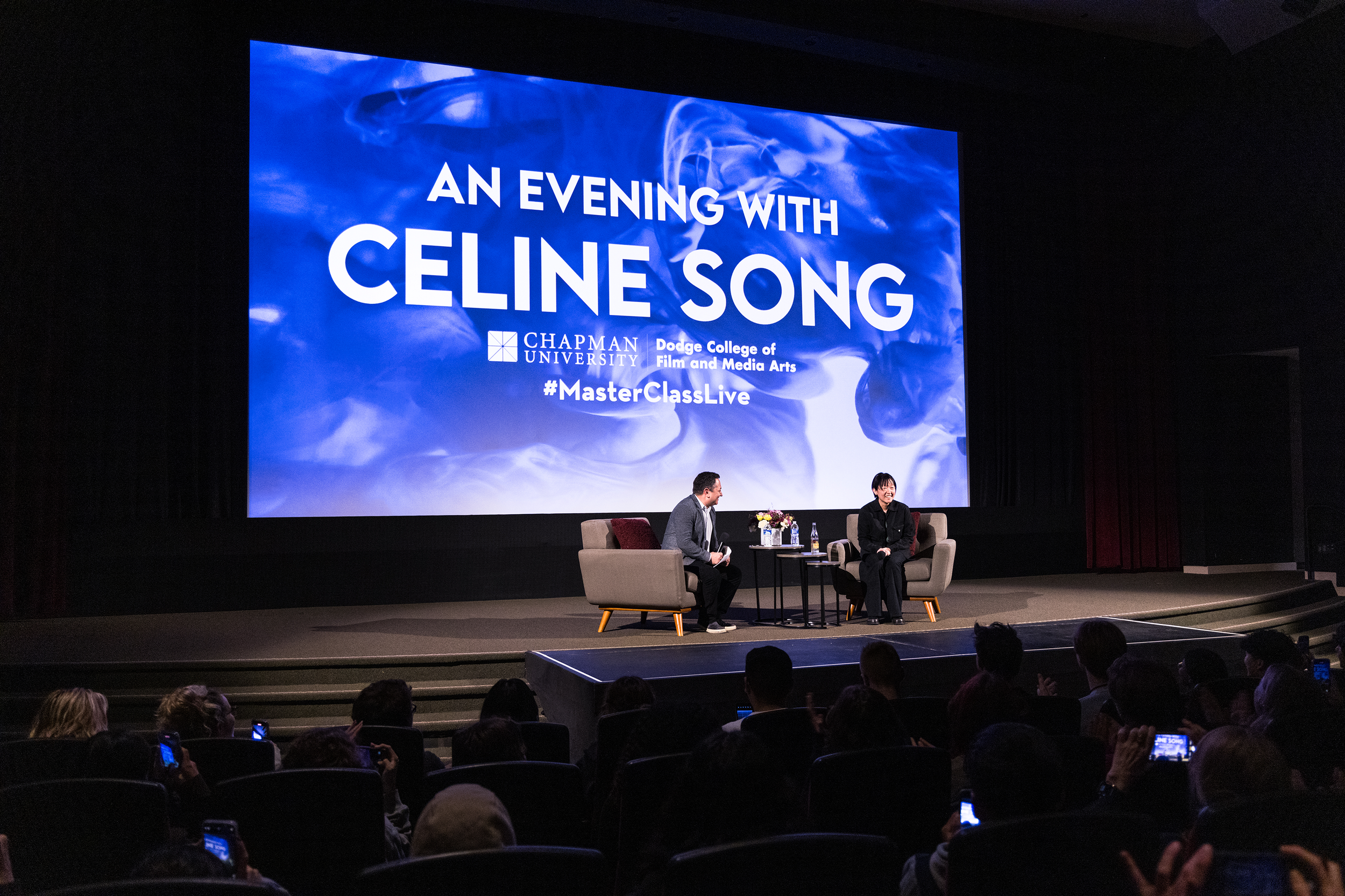 On Feb. 21, Song joined an audience of Chapman students, alumni and faculty for a master class where she discussed her transition from theater to film, her process for writing and bringing her own story to life. The conversation was moderated by Scott Feinberg, the executive editor of awards at The Hollywood Reporter and the host of the Awards Chatter podcast.