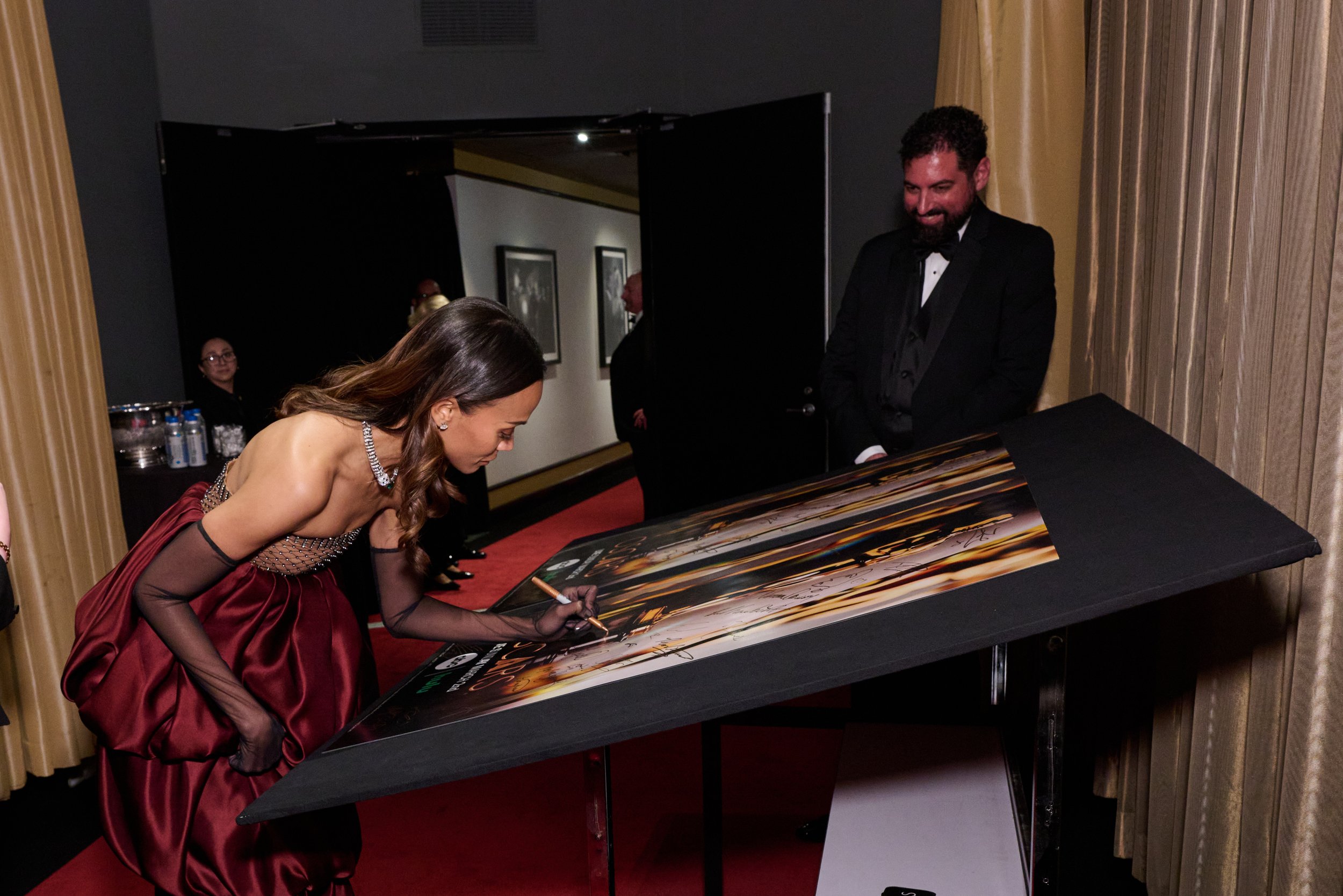 A Mexican outlet in the press room mentioned that a lot has been said about “Emilia Pérez,” about trans people and empowering women, but less has been said about Mexico at the heart of the film. The interviewer asked what Saldaña would say about the heart of this movie and how it has been very hurtful to Mexican people.