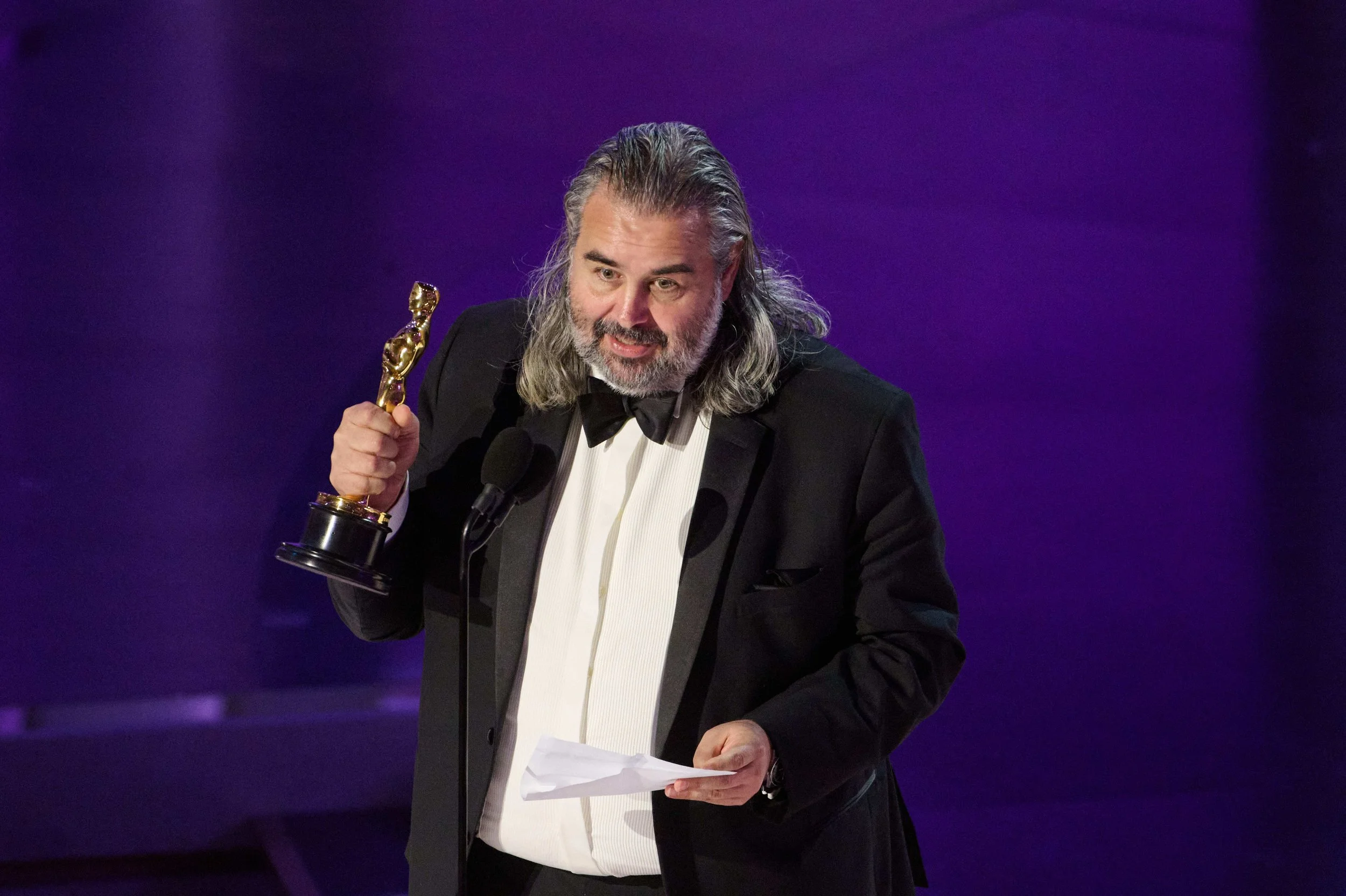 The cinematographer raked in yet another award for “Oppenheimer,” contributing to the film’s total of seven from the night. Van Hoytema spent the majority of his speech thanking his colleagues and higher-ups but ended his speech by thanking “Aunt Gail for her candy apples.” Even more memorable was his opening line, advocating for young filmmakers to shoot on film: