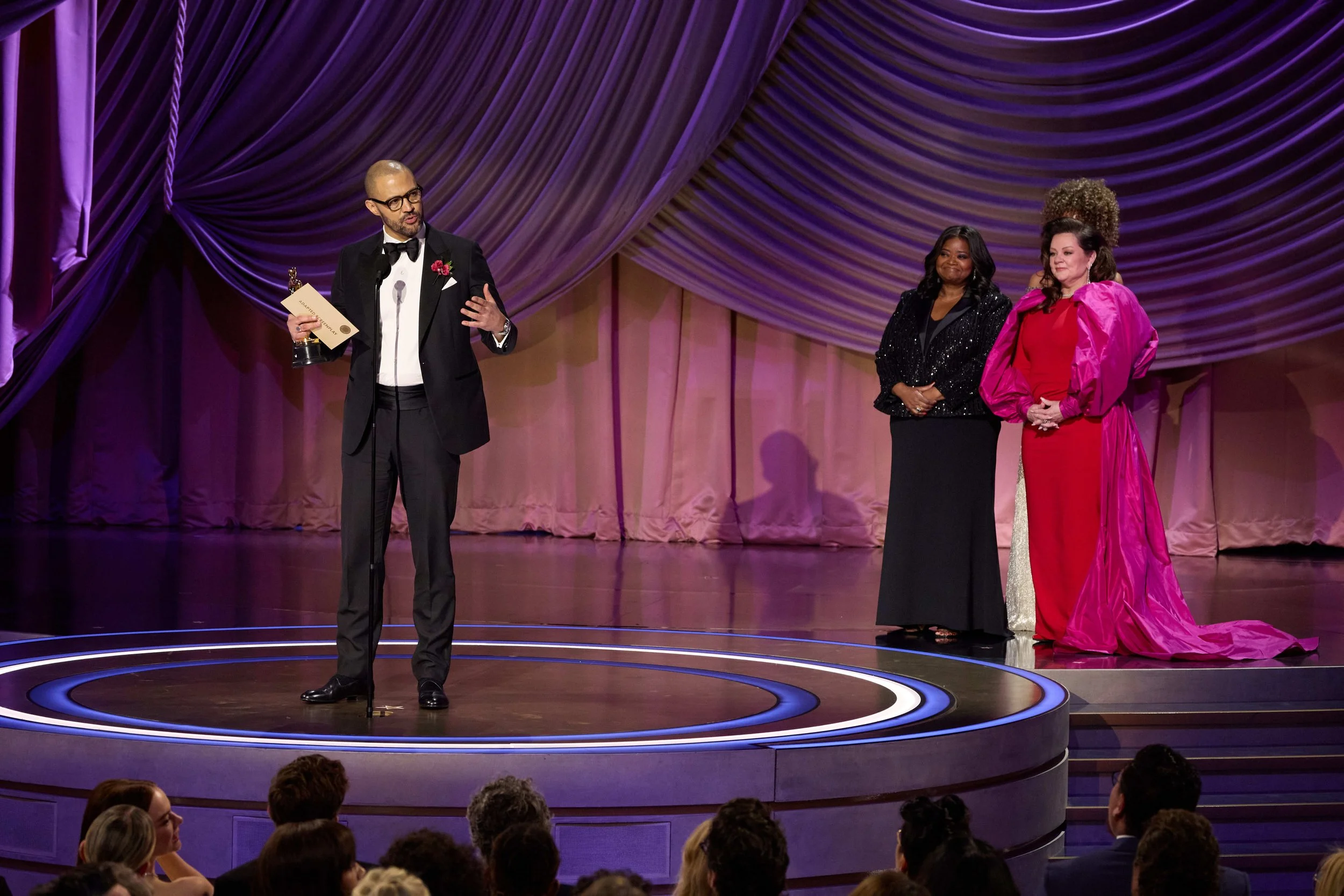 Making his directorial debut, Cord Jefferson took home his first Academy Award for his “American Fiction” script, adapted from Percival Everett’s novel, “Erasure.” He spoke on the numerous rejections he received on the project, not in a manner of vindication, but rather to make the following plea:
