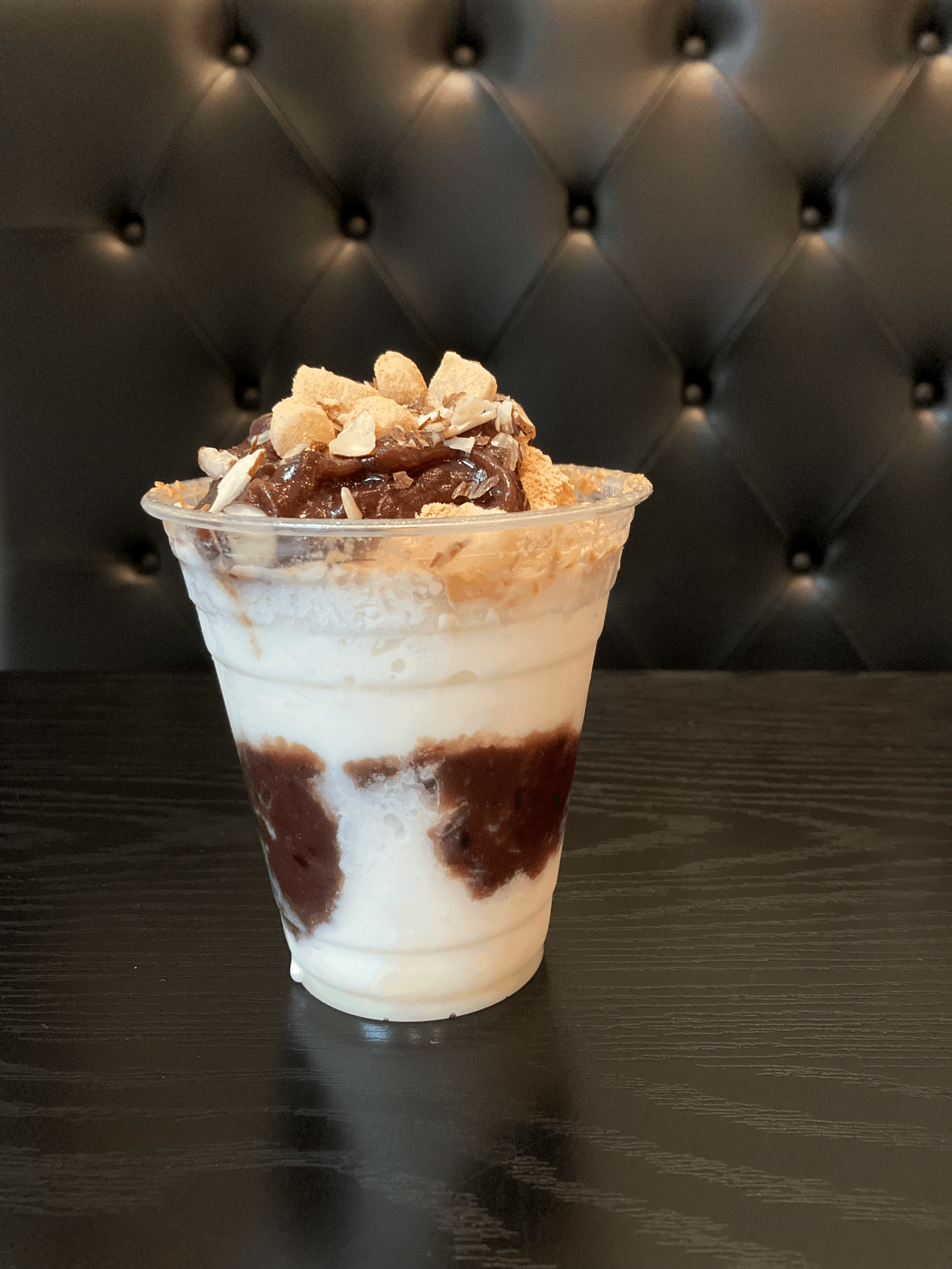 Additionally, the shaved ice is topped with fine red bean powder which takes the red bean theme to the next level, until it clumps up after you start eating — then, it’s much less pleasant. There are also little mochi balls on top which add a chewy texture to the mix and might be the highlight of the dish. They aren't too chewy to the point where you can’t bite through them, but they are just chewy enough to be fun and different.