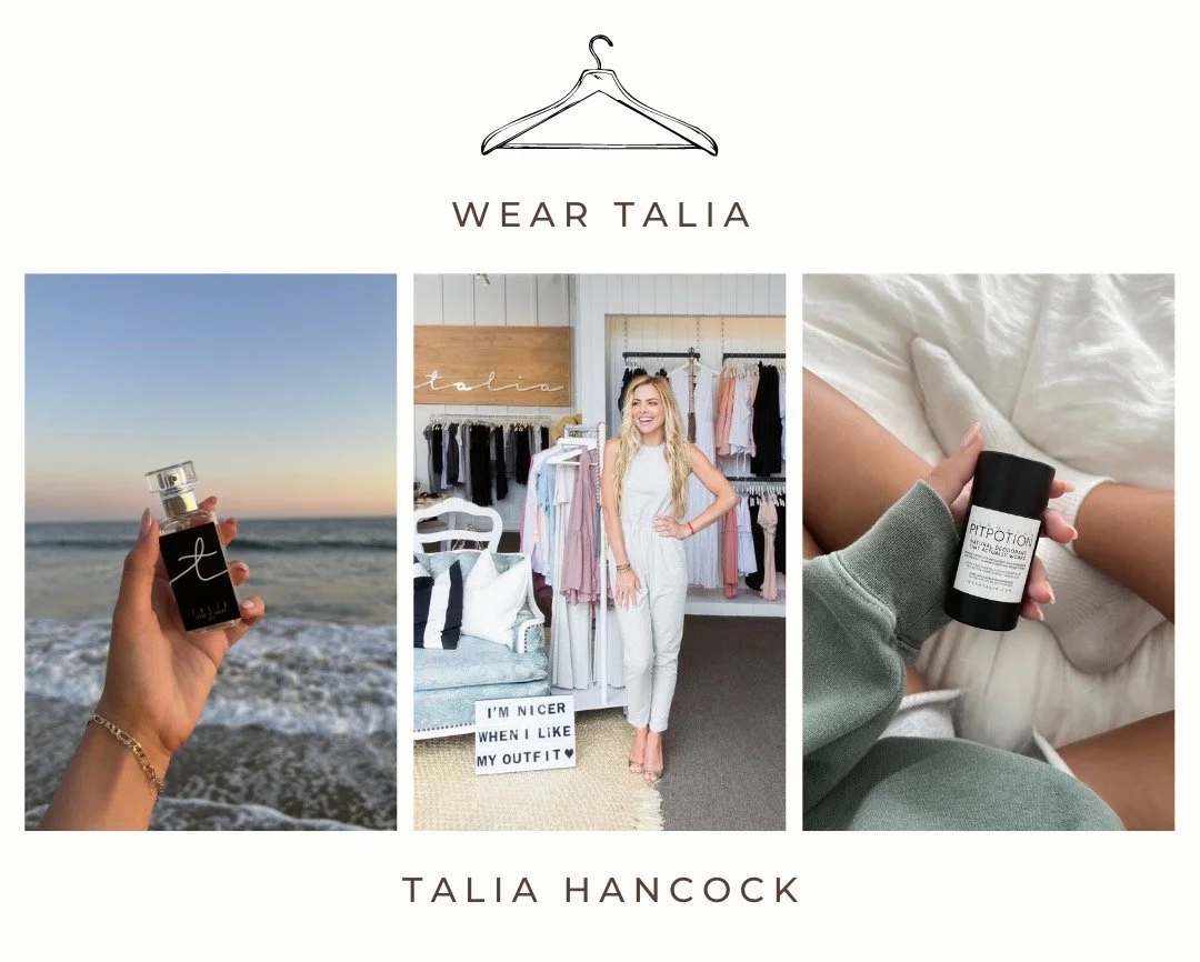With her mom's sense of style as an inspiration, Hancock O'Neill strived to create clothing that any simple dresser could attain at an affordable price. Her store, TALIA, an online storefront focusing on posting inventory on Instagram and customers texting to order, has attained over 23,000 followers and is, according to Hancock O'Neill, "real, honest clothing” for her clientele.