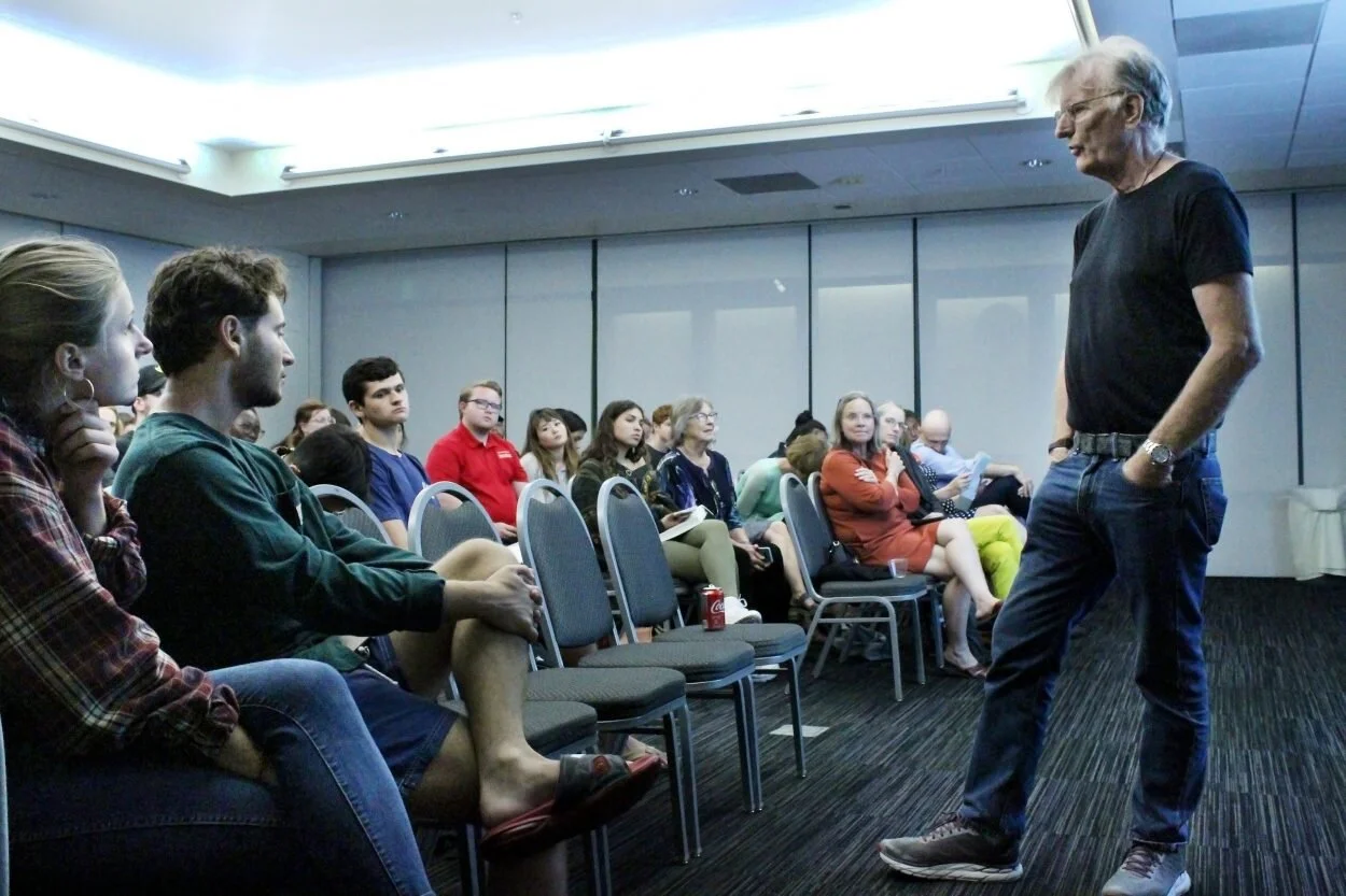 Harry Mattison shared his photoraphy on Central American immigration on Sept. 11, and discussed warzones and country borders. Photo by KALI HOFFMAN, Photo Editor