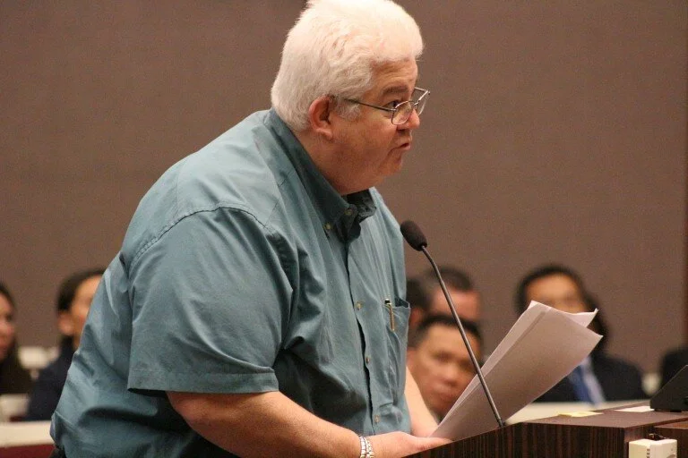 Jim Karas, a resident of Orange, addresses the Council about the proposed party ordinance March 8. Photo by Allie Camp