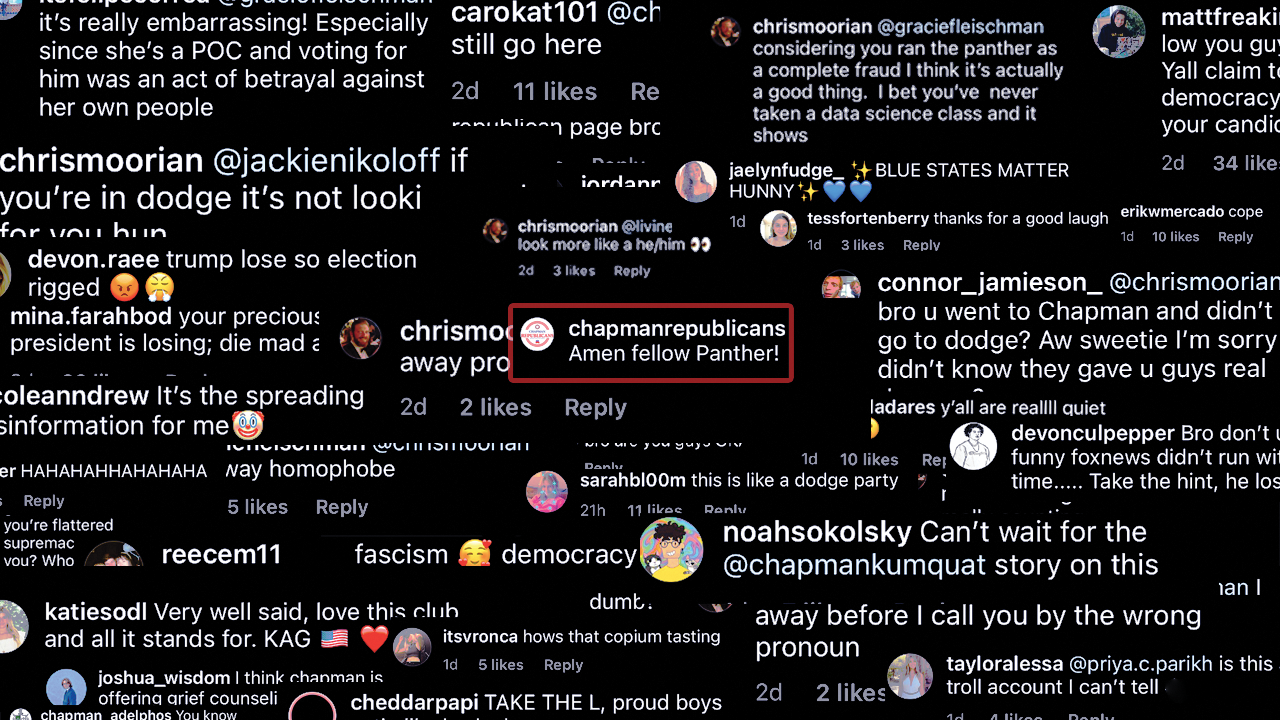 Except left-wing and right-wing Chapman University students, alumni and external commenters flooded the Nov. 6 post, creating a battleground of political and personal dissent. Chapman Republicans usually receive somewhere between 10 to 20 comments on their Instagram post. But the number on this Instagram post exploded to over 1,500.