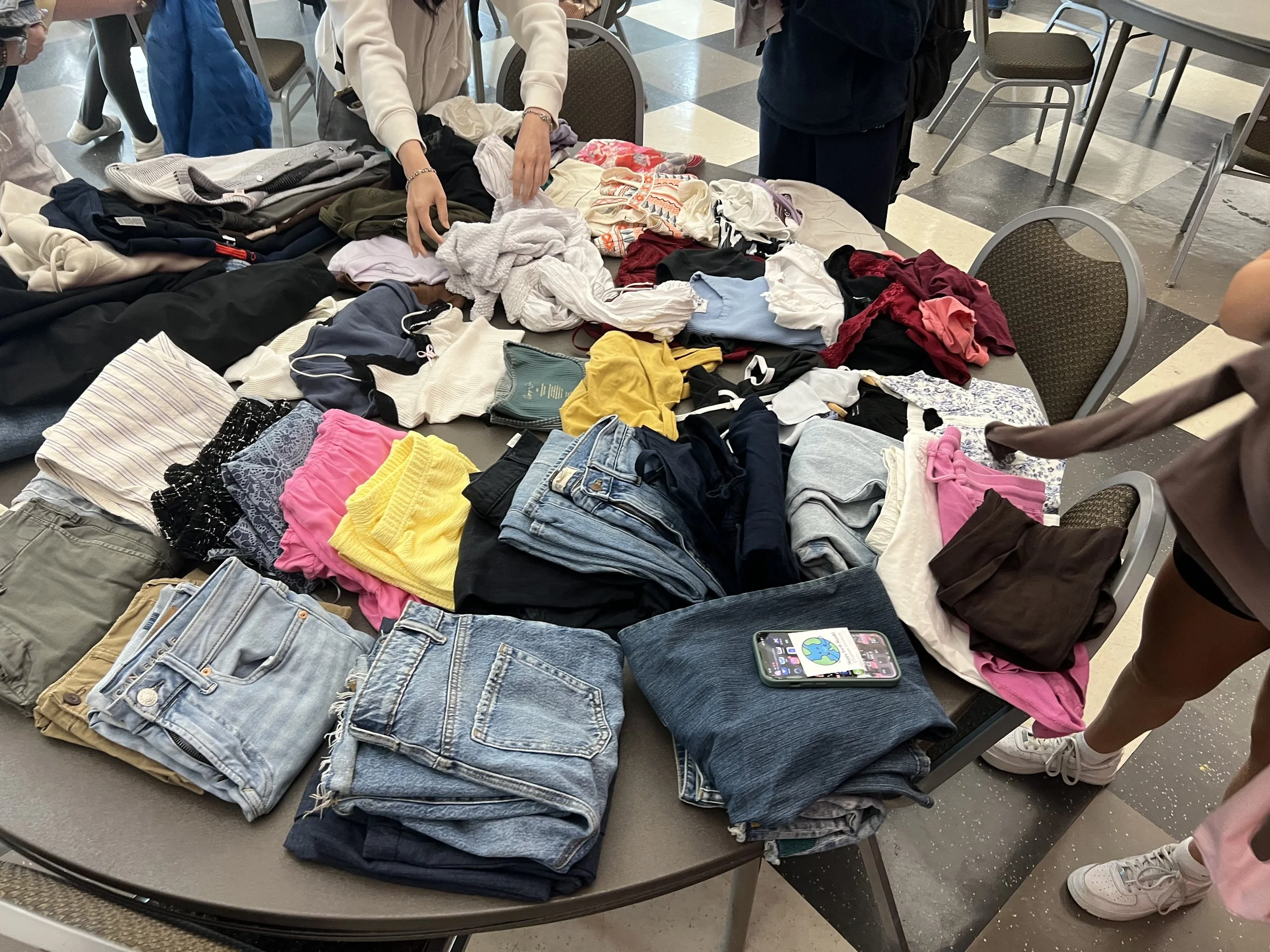 One way the club builds community and turns it into action is through events. The circle back clothing swap featured booths where students could trade items like clothes, trinkets and accessories.