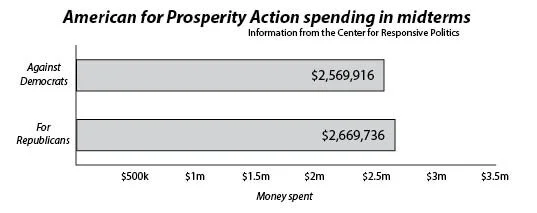 The Koch-affiliated super PAC, Americans for Prosperity Action, had spent more than $5 million on the midterm elections as of Oct. 28. Half went to supporting Republican candidates and half went to opposing Democratic candidates, according to data from the Federal Elections Commission. But Charles Koch warned an audience at a donor retreat in July that Republican candidates shouldn’t expect backing from the foundation unless they support free market ideals and oppose government spending.