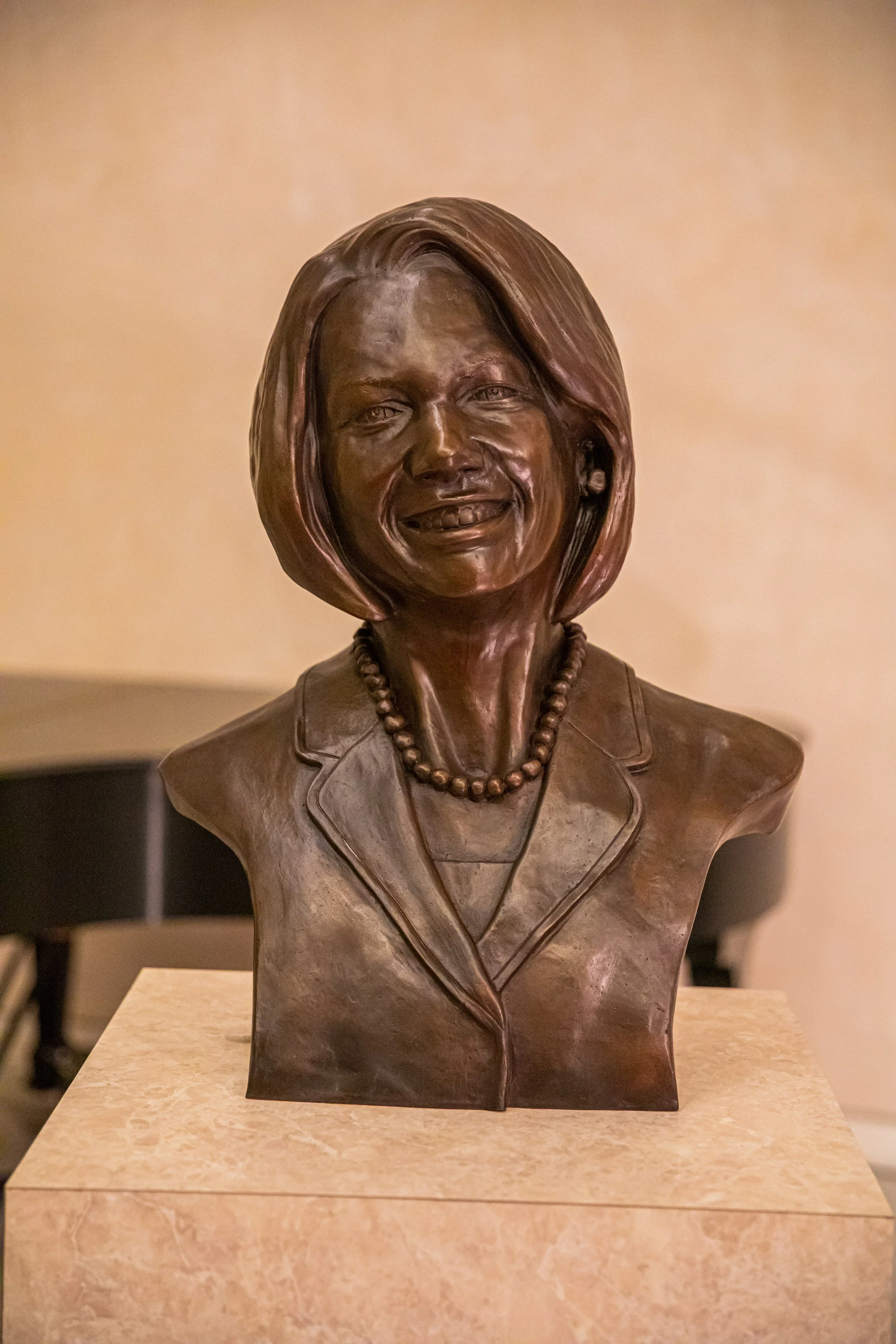 Chapman President Daniele Struppa also unveiled a commemorative bust of Rice that will be placed on campus and added to the university’s preexisting collection.