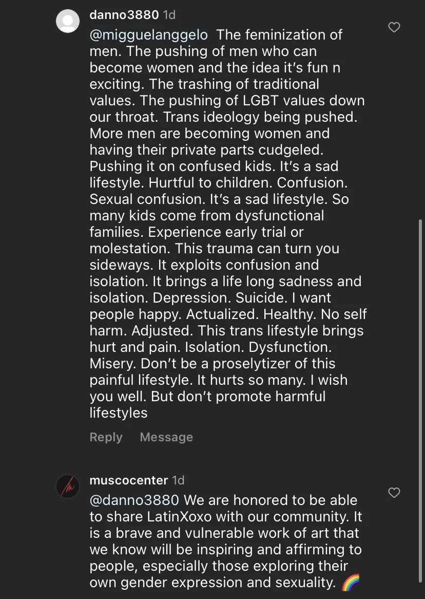 Olvera states that there have been a “handful” of negative comments on Instagram posts that Musco has shared about LatinXoxo. These comments have since been deleted.