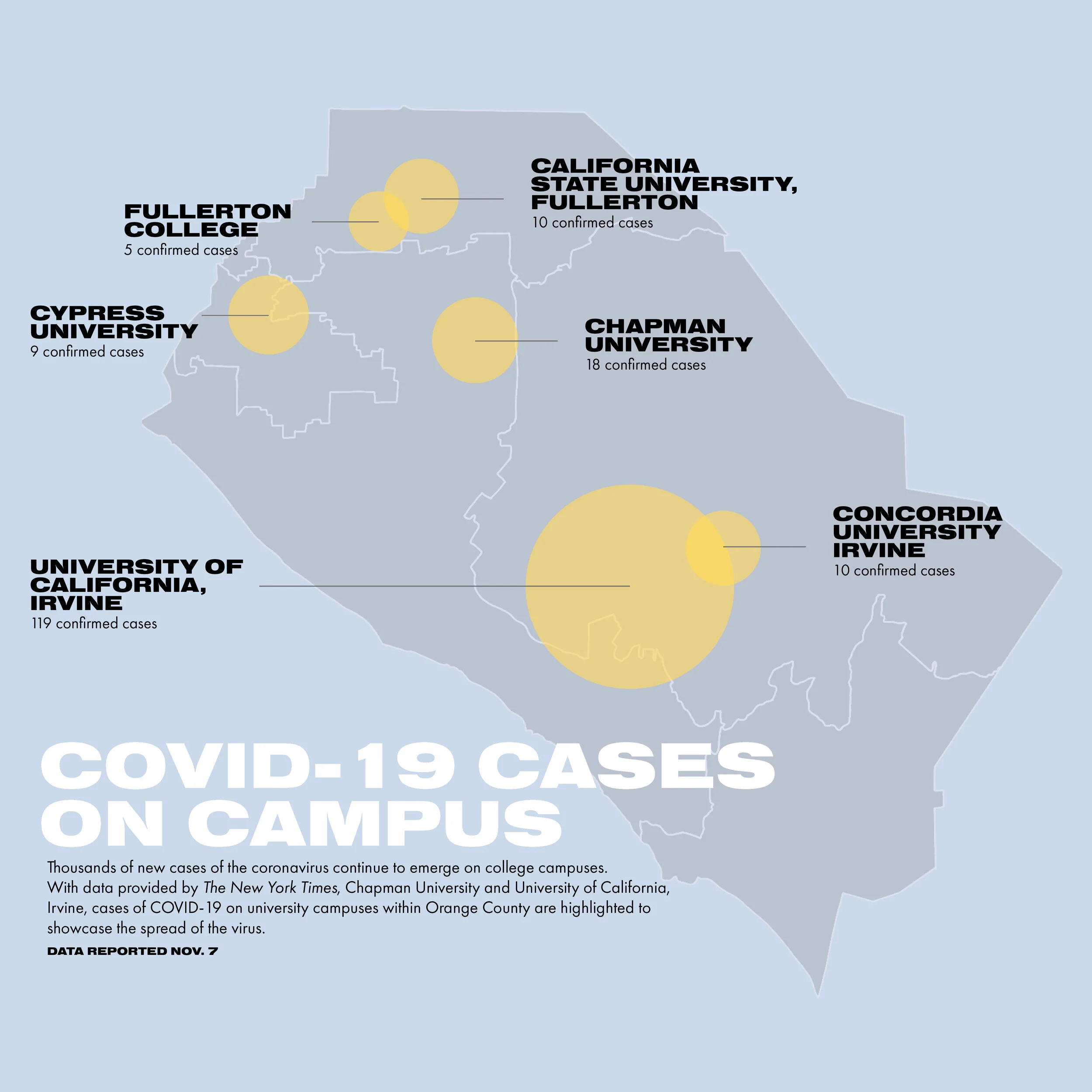 The Panther is tracking the number of active cases the university reports. On Nov. 6, Chapman reported 18 active cases of the coronavirus.