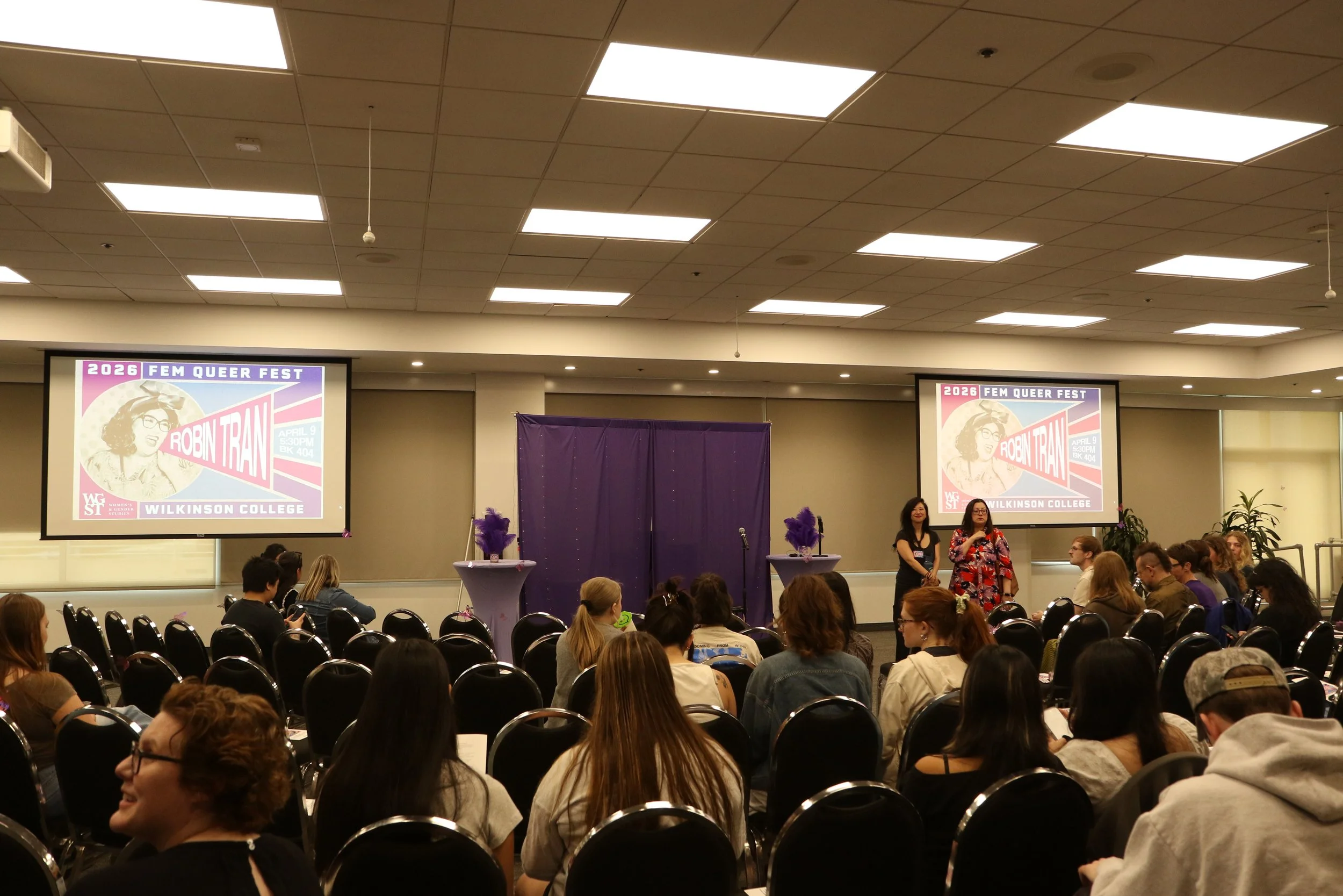 Comedian Robin Tran gathered with students, faculty and the Chapman community at Beckman Hall for FemQueer Fest (FQF), bringing humor about sexuality, math problems and even religion.
