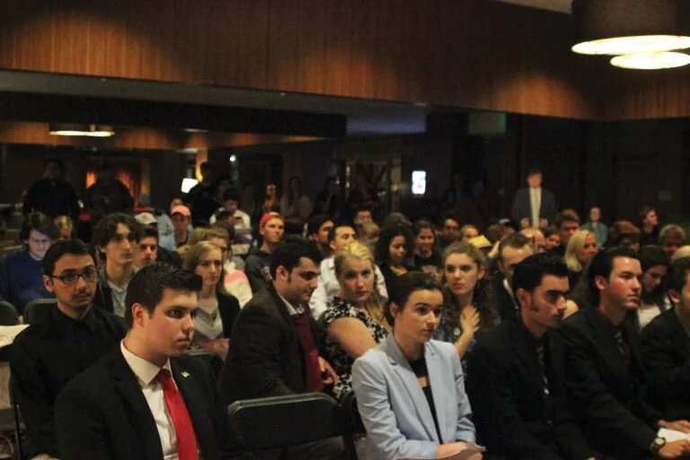 About 80 students gathered in the Student Union April 25 to participate in a debate put on by Civic Engagement. Photo by Maya Jubran