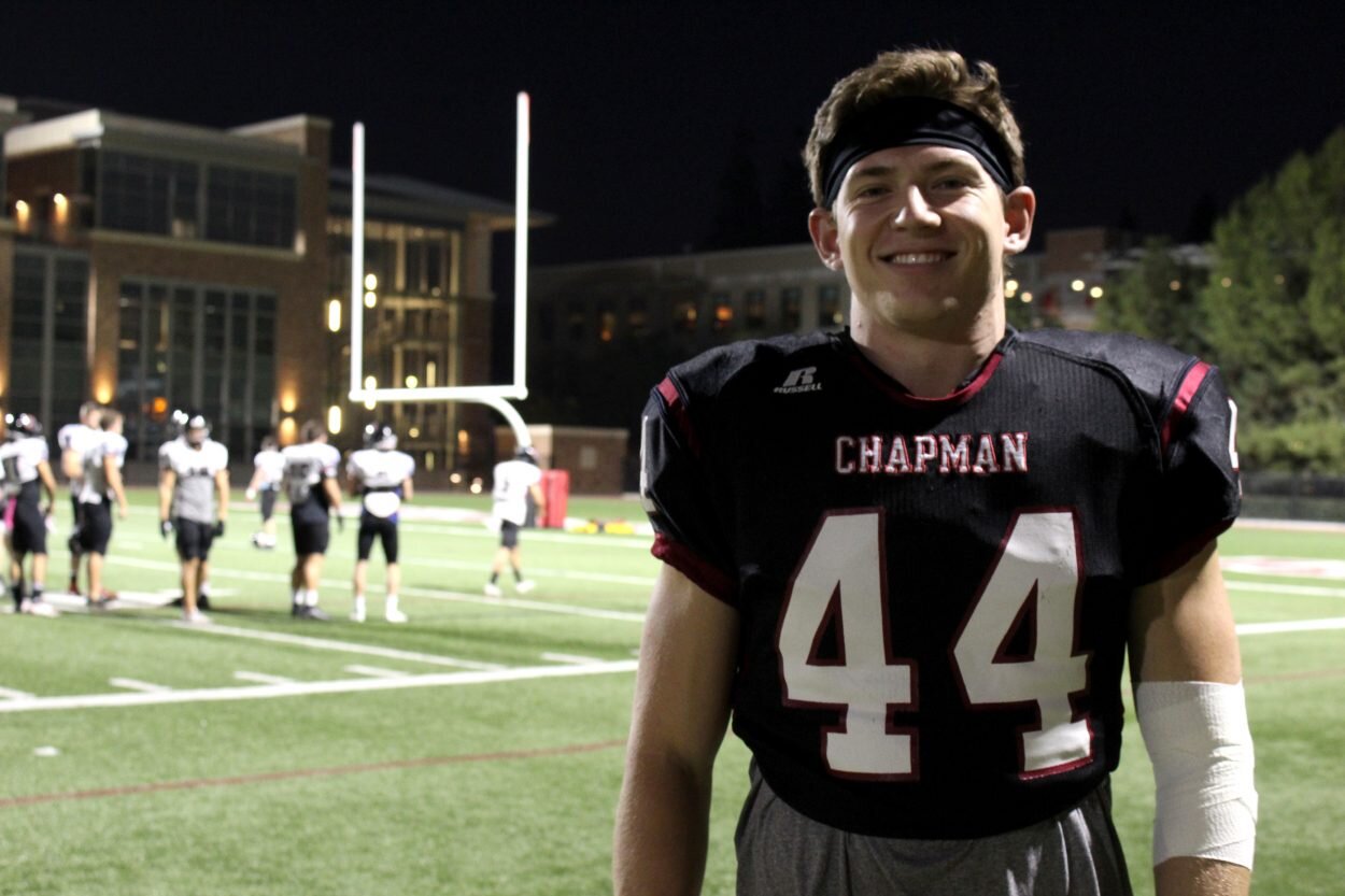 Dillon Keefe, a junior outside linebacker, said he believed other students at times look at Chapman’s football team as “a bunch of goofballs.” Photo by KALI HOFFMAN, Photo Editor.