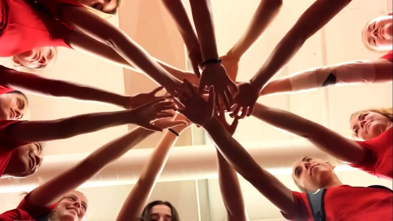 Many Chapman athletes have a specific pregame ritual and members of the women’s volleyball team are no different. To calm their nerves before a game, the players do a group cheer (above) and have a pair of teammates performs a skit centered around the opposing team’s mascot. Photo courtesy of Naeli Munoz