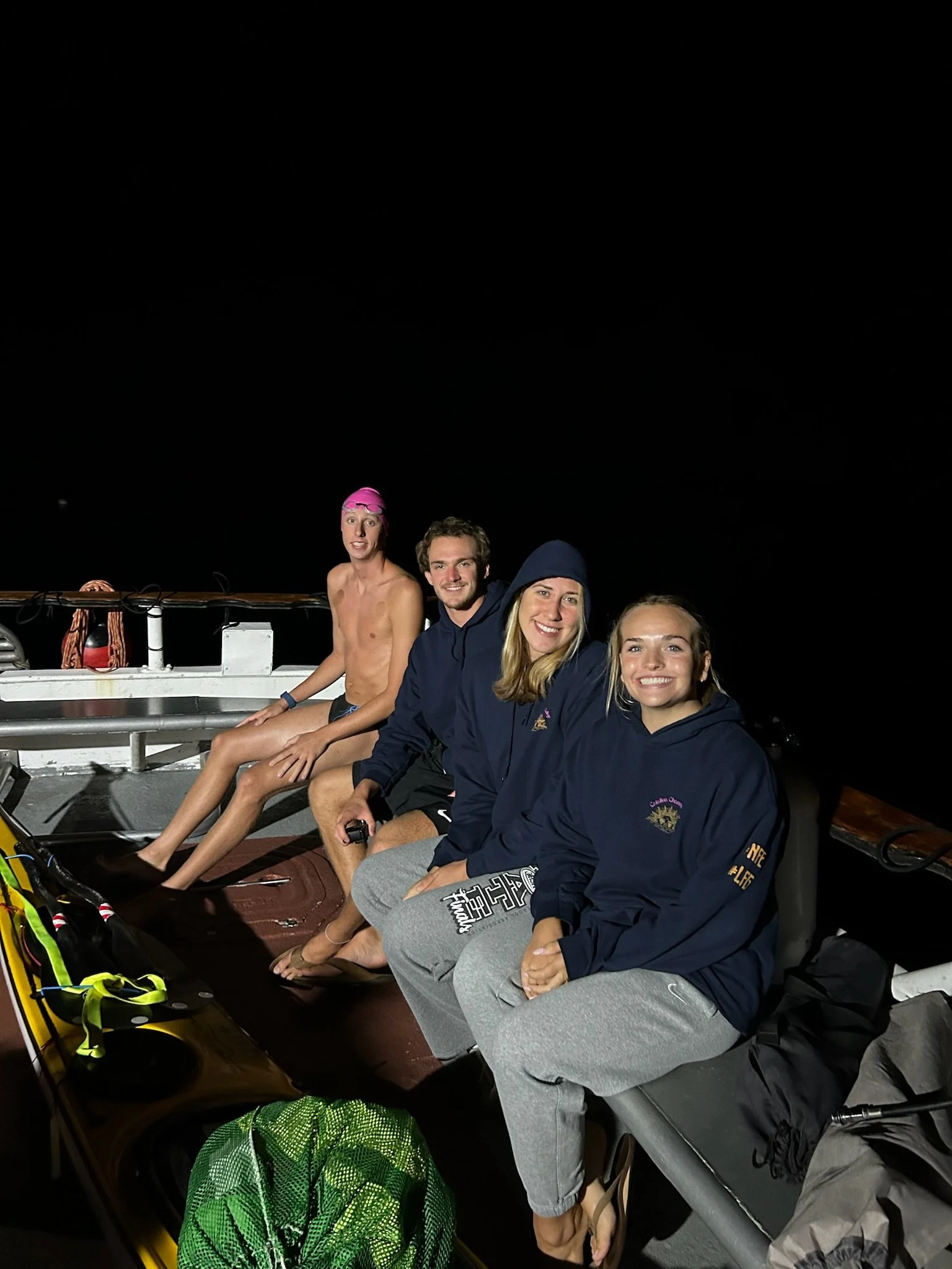 Gliding through the pitch black ocean with fish and wildlife surrounding them, the swimmers stayed focused on the task at hand. Chambers, a health sciences major, expanded on the mental aspect of being in the cold, dark water for so long.