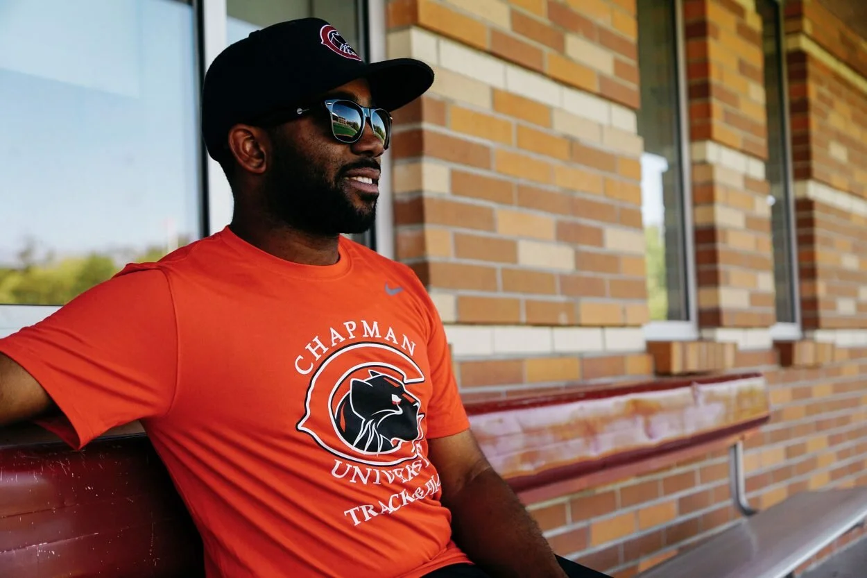 Woods is stocky and muscular; he looks like a powerhouse. His body seems to hum with a pent-up, staccato energy that seems to threaten to burst out at any second. Before Woods became head coach of Chapman’s track and field team in 2017, he danced from sport to sport, eventually landing back at track in high school.